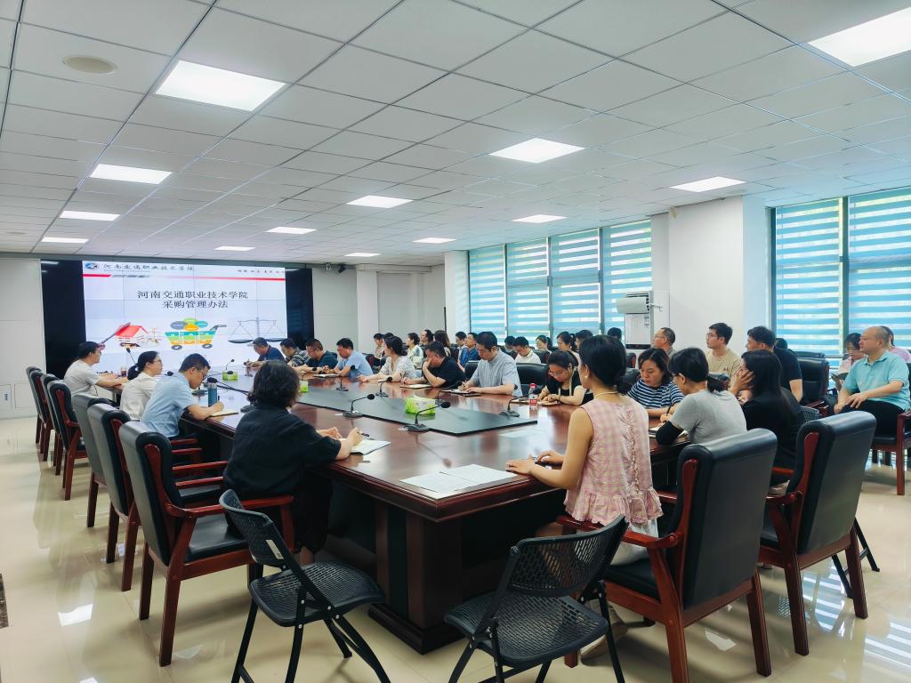 会议解读了《河南交通职业技术学院采购管理办法》、《河南省教育厅关于加强政府采购管理工作的意见》、教财(2023)10号、学校自采项目采购流程及注意事项。
